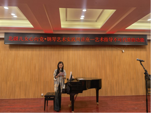 讲座环节中张思斯以《艺术指导不可替代的功能作用》一题为我院师范生讲述根据不同音乐风格进行伴奏等内容,深入浅出的讲座内容为师生在艺术指导方面提供了帮助。乌达木以《认识钢琴调律工作者——基本钢琴调律与保养技巧入门》一题为师生讲述如何在生活中操作简单的钢琴调律,并通过公开课在实践中带领学生动手解决钢琴保养中遇到的基本问题,为师生在生活实践中如何保养钢琴方面提供了方法和方案。王雪莹在钢琴重奏公开课中为学生讲解重奏曲目的同时对演奏技能的提高和配合度方面提供了有效的方法,为师生演奏编排重奏曲目提供了诸多思路。