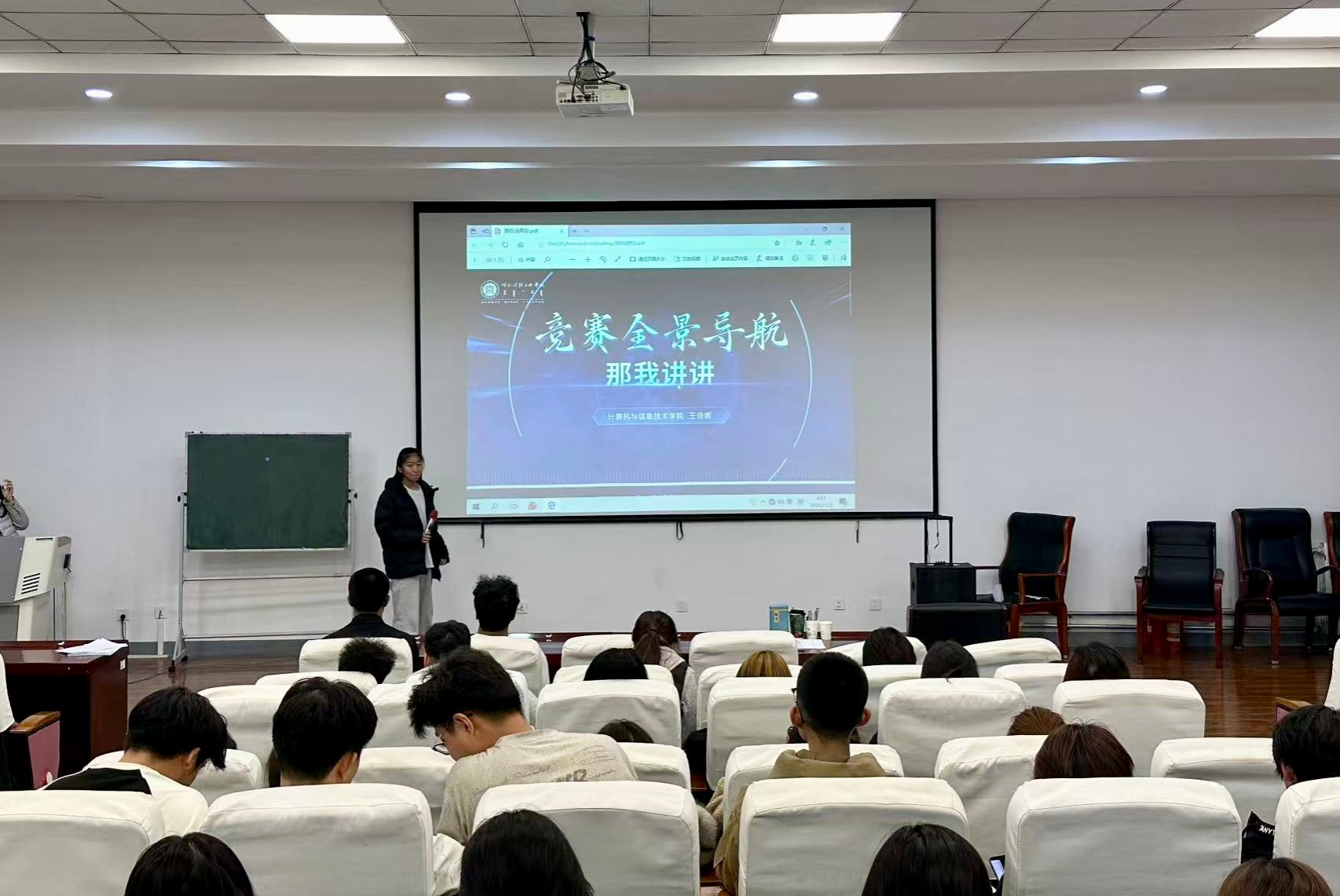 宣讲会伊始,潘滢如结合AI与机器人产业的发展趋势,强调了专业竞赛在锤炼技术能力、培养创新思维与团队协作精神中的重要作用,鼓励同学们主动把握机遇,以竞赛为契机提升综合竞争力;宣讲会还邀请到了校易班工作站站长、计算机程序开发社团社长王佳妮同学分享实战经验,她围绕全国大学生电子设计竞赛、RoboCon机器人竞赛等主流赛事,梳理了赛事规则、赛道分类、时间节点等,并结合自身备赛经历,从团队组建、时间规划、技术积累等方面分享了实用技巧,生动讲述了备赛过程中遇到的难题及解决思路。