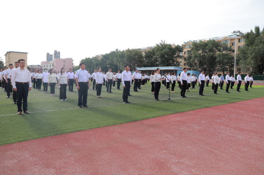 为庆祝中国共产党成立102 周年,持续深入学习贯彻党的二十大精神,全面推动学习贯彻习近平新时代中国特色社会主义思想主题教育走心走深走实,7月1日清晨,best365在北区体育场举行了隆重的升旗仪式和重温入党誓词活动。校党委委员、全校师生党员参加活动。校党委书记刘九万领誓,校党委副书记胡春梅主持仪式。