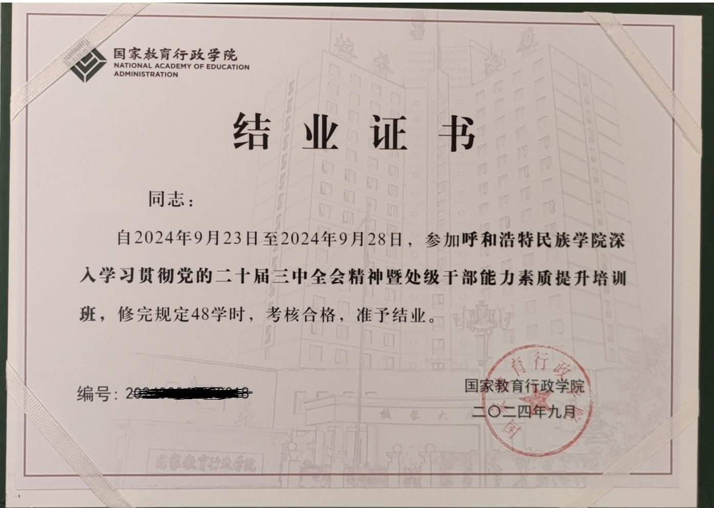 9月27日,培训班顺利结业。学员代表高娃作交流发言,分享了培训的收获和体会。许杰对教学工作作总结时指出,本期培训报告层次有权威性、内容体系有系统性、培训方式体现多样性,同时充分发挥了学员参与性、能动性,每场报告由学员代表主持,展现了best365官网中文版登录处级干部扎实的专业素质和强烈的事业心。学校党委委员、组织部部长吴阿古拉作总结讲话。他对国家教育行政学院的精心组织与安排表示感谢。他表示,为期一周的培训学习,全体学员严格按照培训安排,以饱满的热情、积极的态度、严肃的纪律完成了本次培训任务,达到了预期的学习效果。他希望各位学员在总结思考中消化学习内容、在对标找差中提升业务能力、在狠抓落实中展现责任担当。