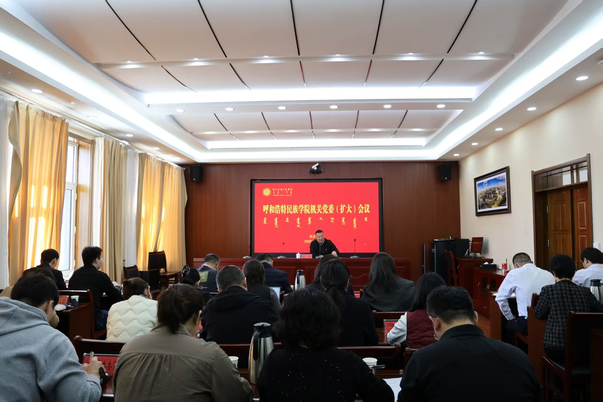 3月19日,学校在综合楼12楼会议室、办公楼四楼会议室同步开展深入贯彻中央八项规定精神学习教育业务培训会,传达学习了中央、自治区党委、校党委党的建设工作领导小组会议精神和开展全区深入贯彻中央八项规定精神学习教育业务培训会议精神,为高质量开展好学校学习教育奠定基础。校党委委员、组织部部长吴阿古拉,机关党委书记、党政办公室主任包仓对《学校开展深入贯彻中央八项规定精神学习教育的实施方案》进行解读。