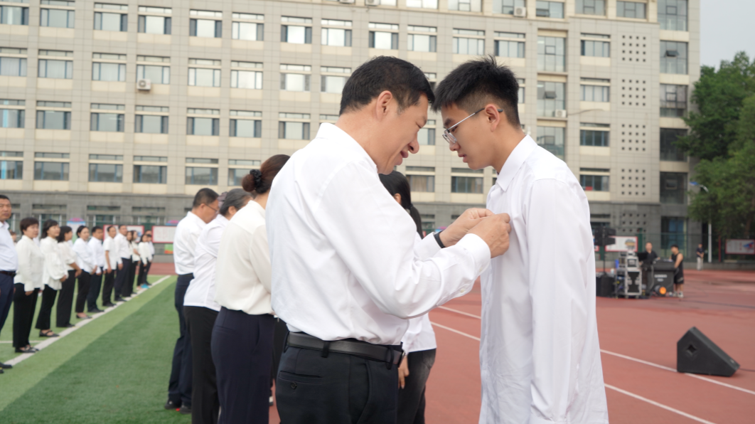 宣誓结束后,进行了老党员为新党员佩戴党徽环节,老党员们亲手将党徽佩戴在新发展党员的胸前。老党员勉励青年党员继续加强政治理论学习,注重日常言行举止,用实际行动诠释对党的忠诚。